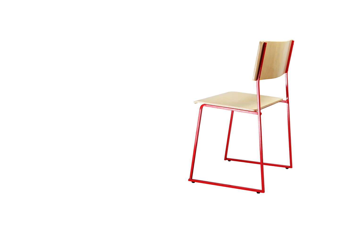 jawad is part of a collection structured of solid square steel rods of 12 mm. jawad is a multi use chair, with a seat and a back made out of 15 mm plywood. The chair is stackable, and its structure is powder coated within the LI referenced colors. The chair is available with a write pad, and with the option of an upholstered seat.