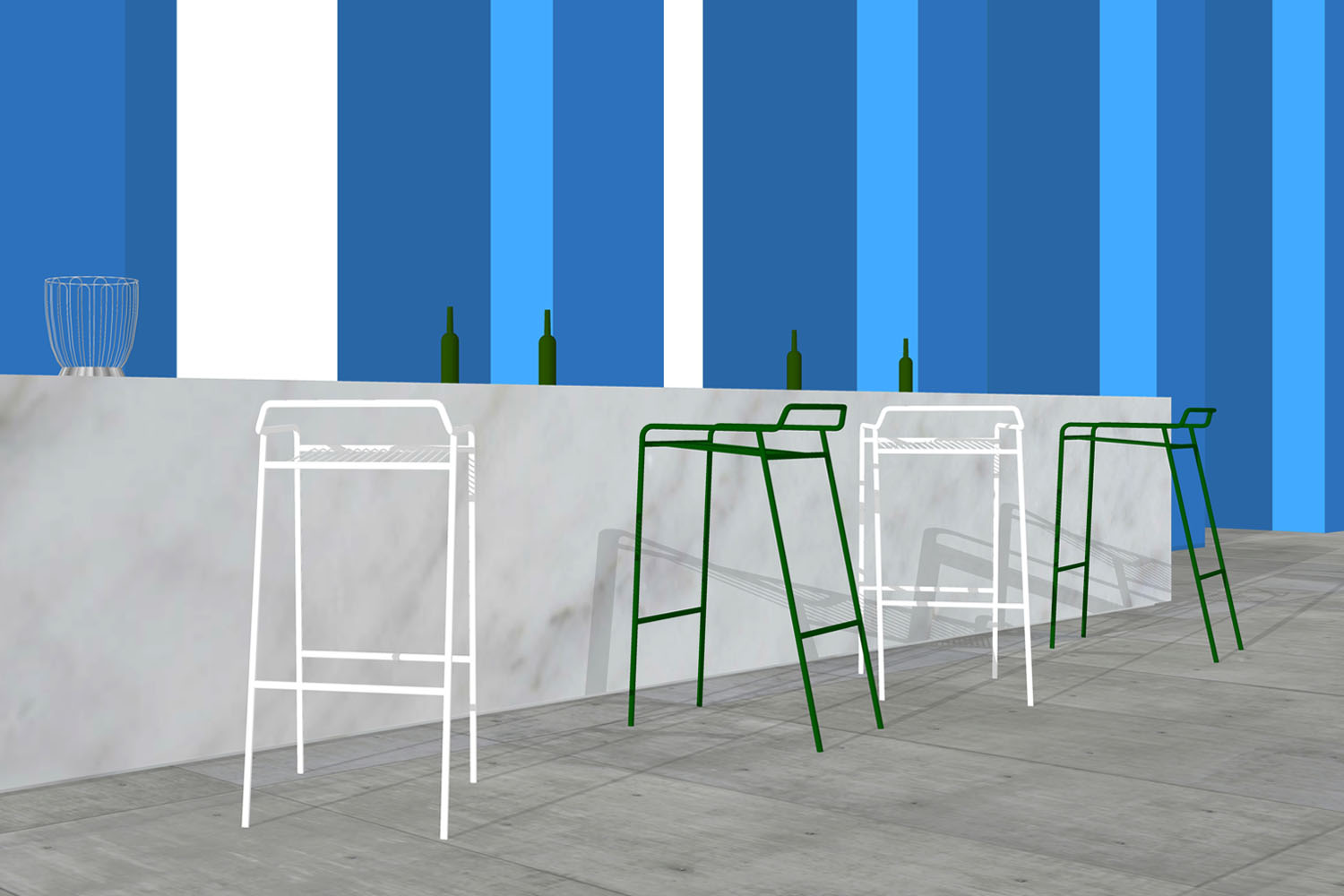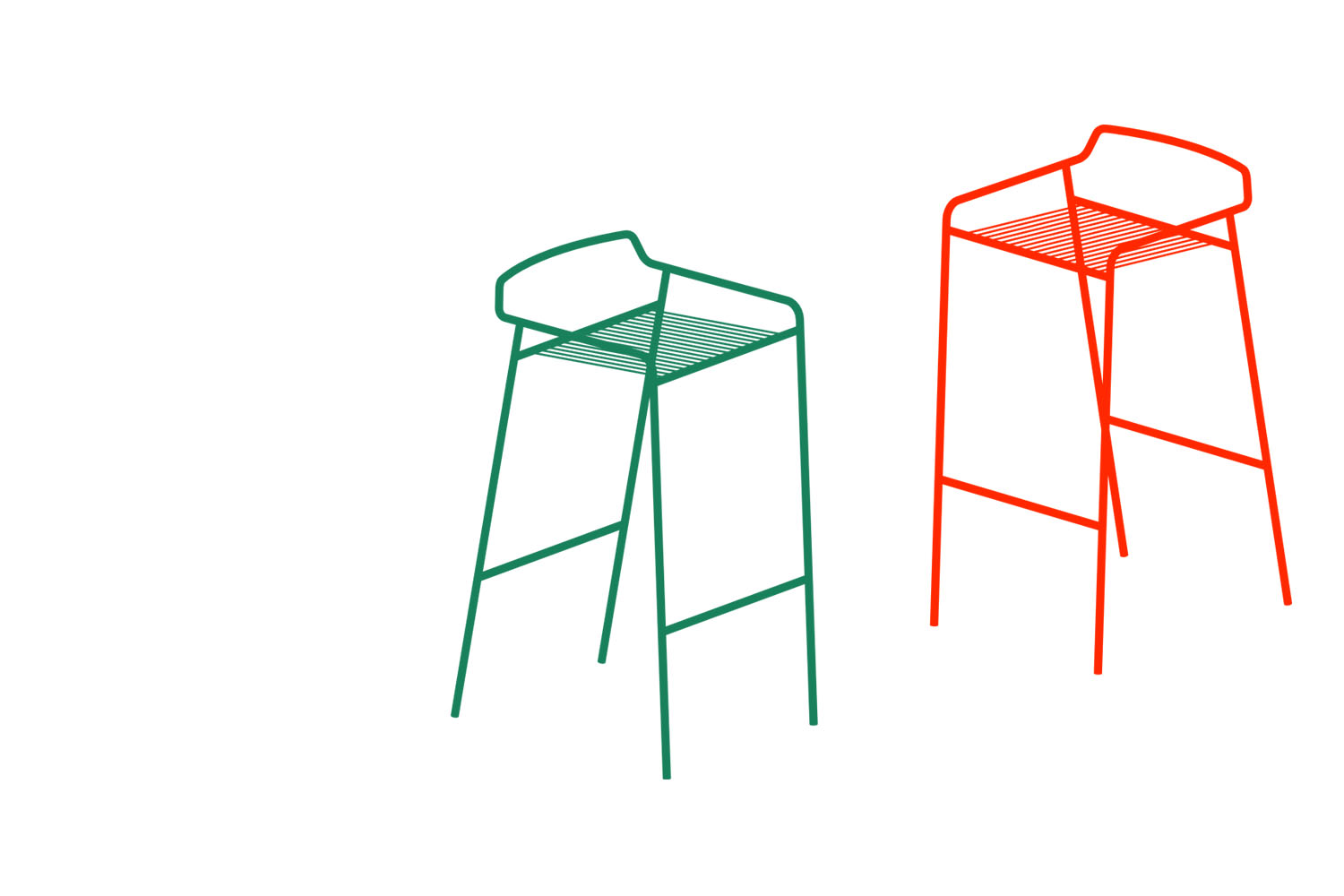 MIKE family was imagined and defined according to the means and possibilities of the local artisans, in terms of steel bending and twisting. The idea was to create a simple design that would fit most locations. MIKE is composed of two elements : a 20 mm steel tube as the main structure, and 5 mm solid steel bars forming the seat and the backrest. MIKE is available as a Lounge chair, a Dining chair and a Barstool. The chair is galvanized before being powder coated. dimensionsW40 X D34 X H76/86 CMmaterials20 mm Steel tubes powder coated.Optional cushions available.