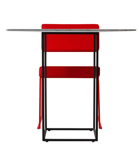 AKRAM Table is designed to match the JAWAD and JAMIL series. Using the 12 mm solid steel rods as the structure, the table top is made of a thin carrara marble plateau. AKRAM is a multi use table and can perfectly fit in cafés, or homes. The top comes as well with plywood. The structure is powder coated in ( LI referenced colors).
