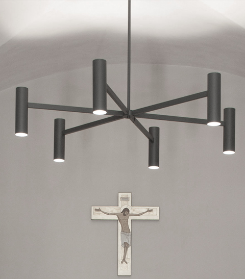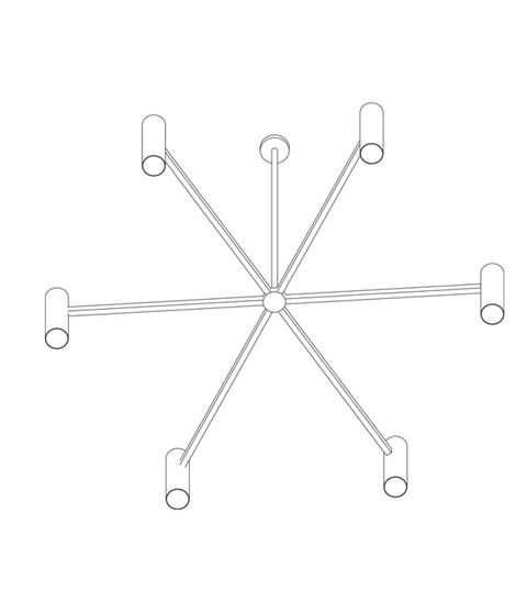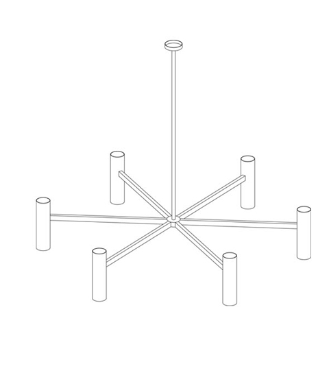 MARIO is a Chandellier inscribed in an hexagon. Each of its membranes, suspends a cylindrical aluminum tube containing LED lights.