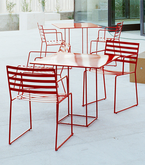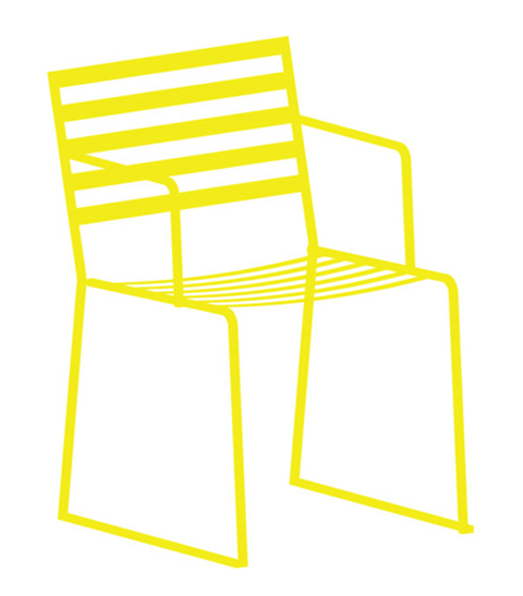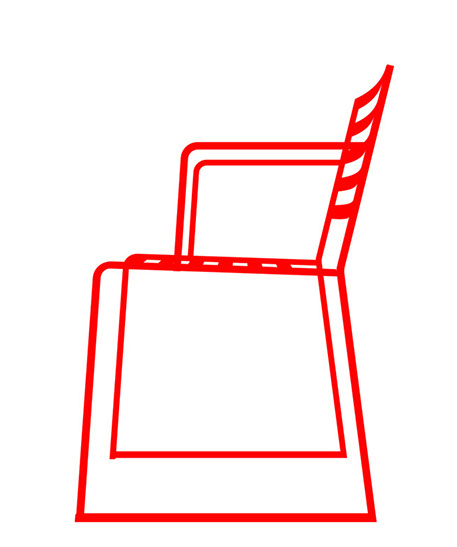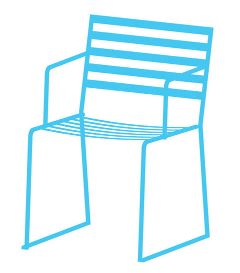 TUTU is an outdoor collection of chairs made of two elementary components : a 10 mm solid steel square rod, and bended flat steels. The chair is galvanized before being powder coated ( in LI referenced colors). TUTU comes with weatherproof cushions, that can be attached to the structure ( LI referenced fabric colors).