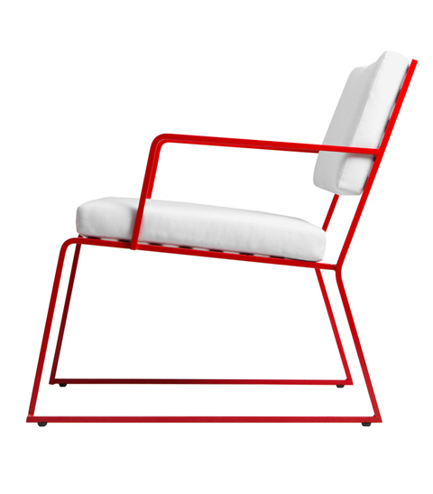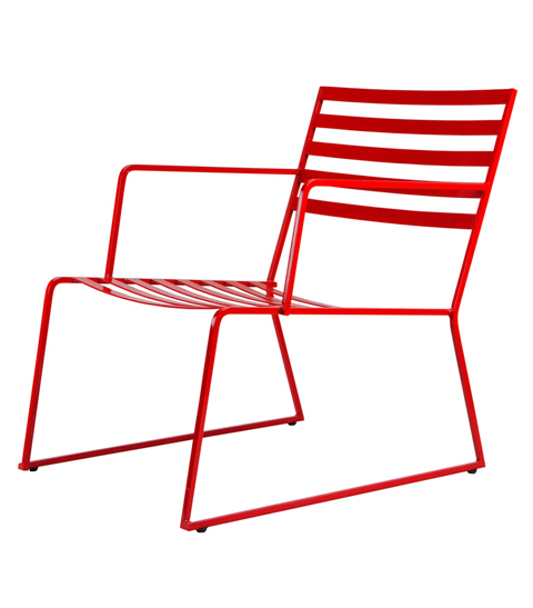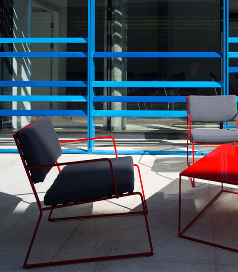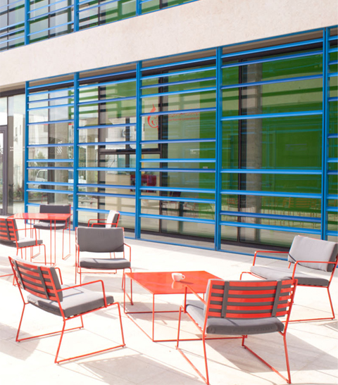TUTU is an outdoor collection of chairs made of two elementary components : a 10 mm solid steel square rod, and bended flat steels. The chair is galvanized before being powder coated ( in LI referenced colors). TUTU comes with weatherproof cushions, that can be attached to the structure ( LI referenced fabric colors).