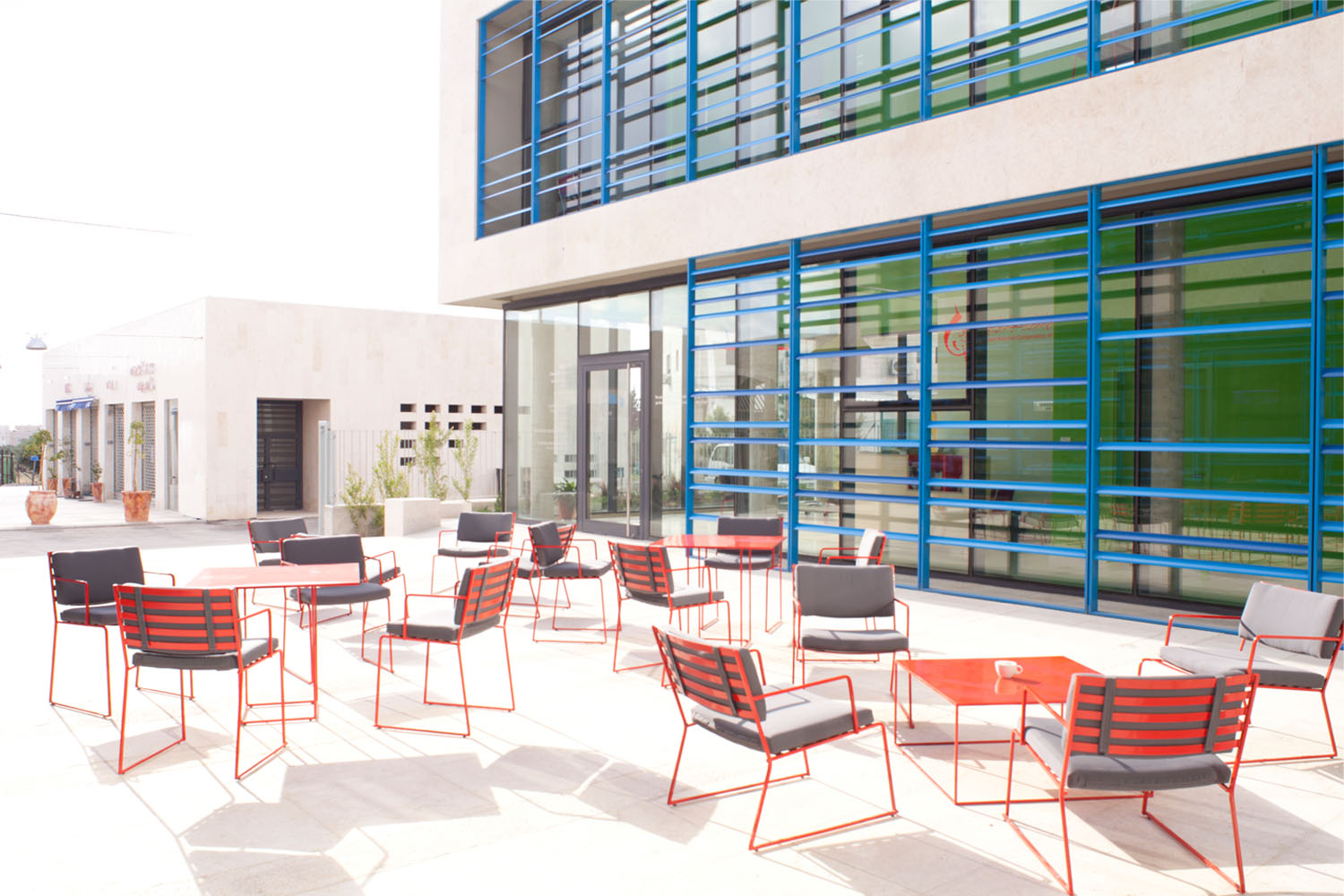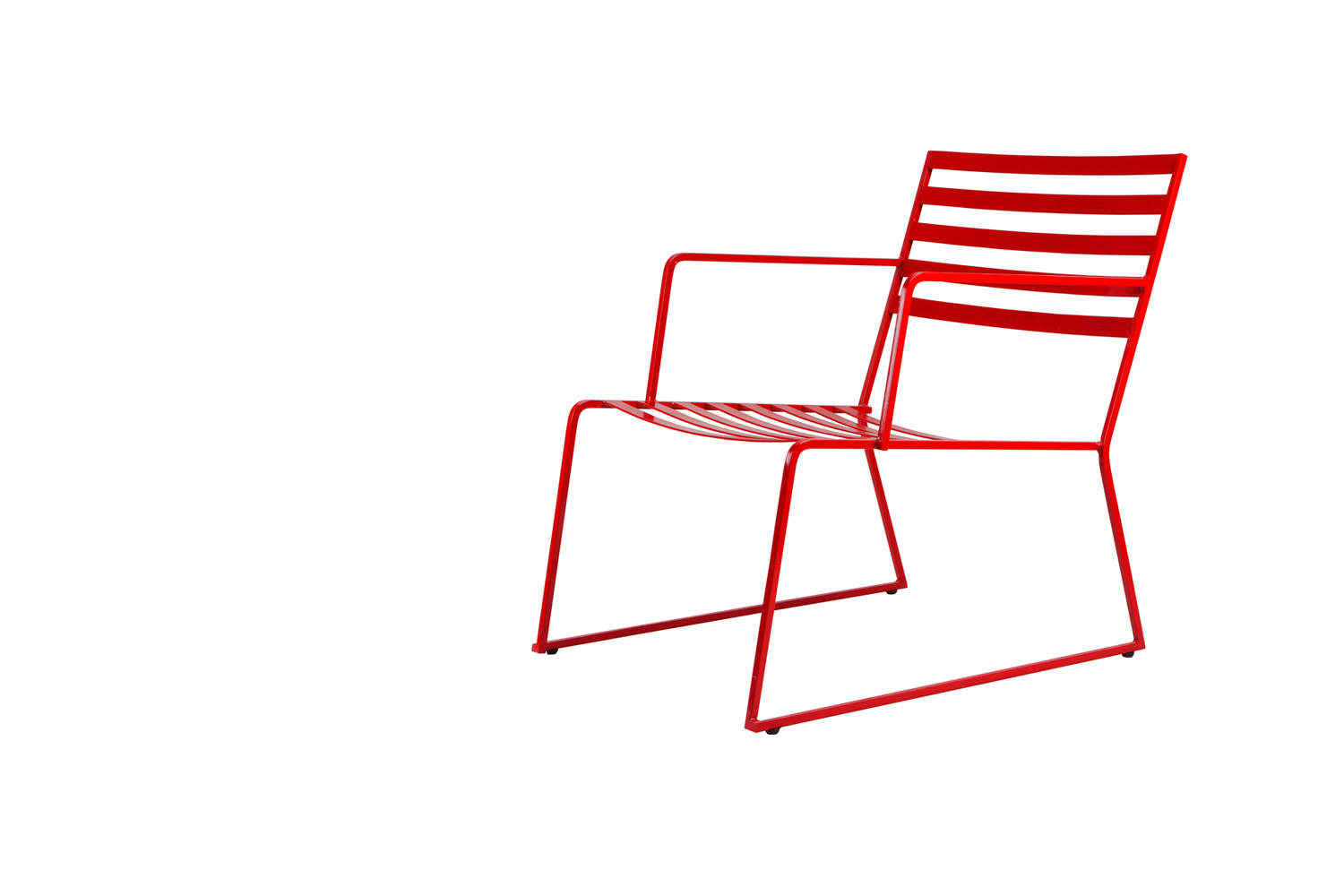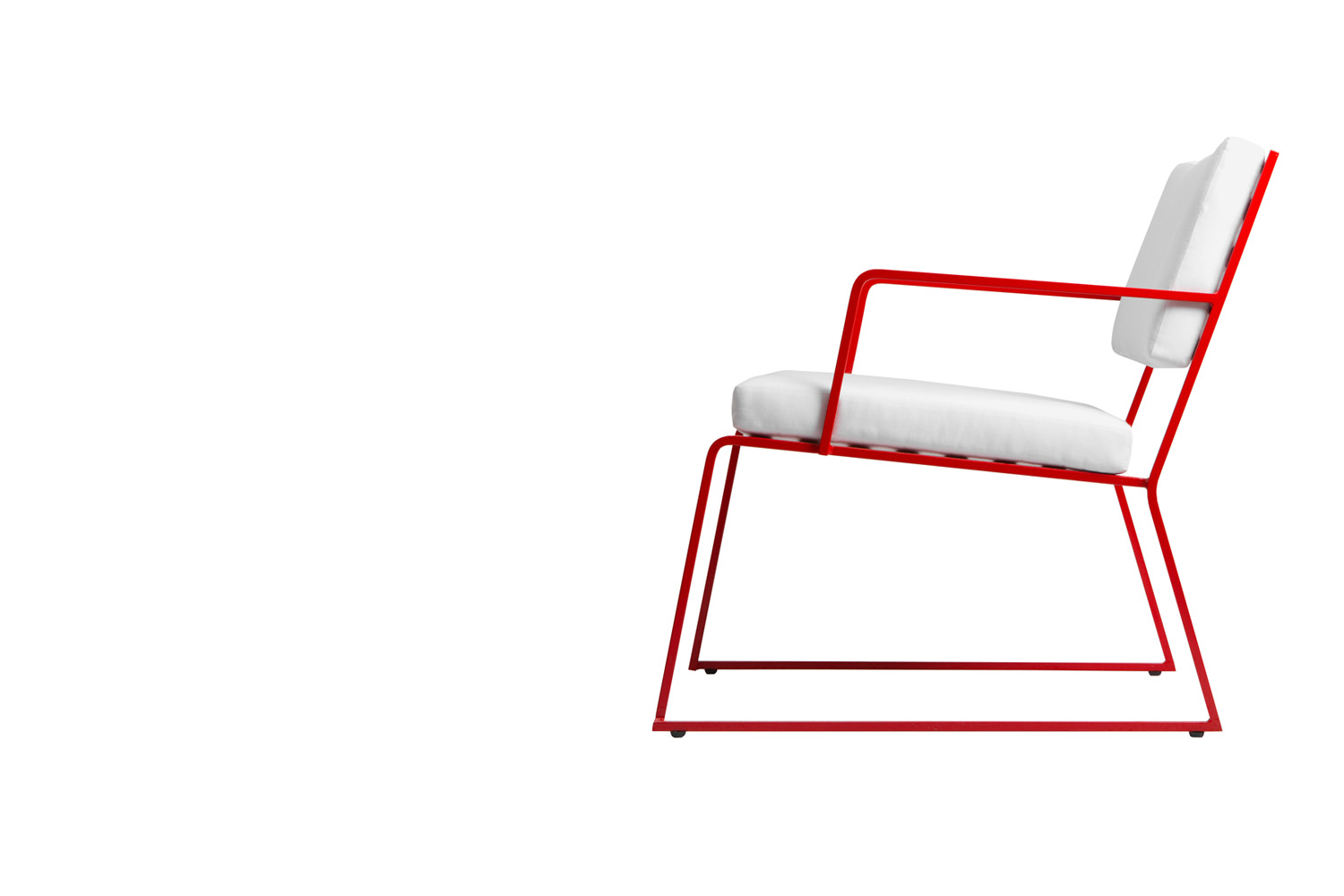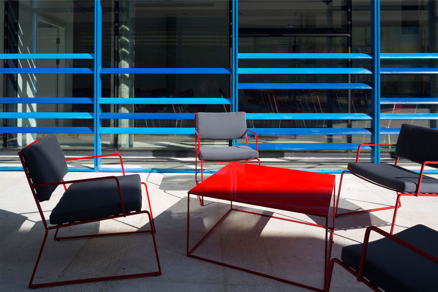 tutu is an outdoor collection of chairs made of two elementary components : a 10 mm solid steel square rod, and bended flat steels. The chair is galvanized before being powder coated ( in LI referenced colors). TUTU comes with weatherproof cushions, that can be attached to the structure ( LI referenced fabric colors).